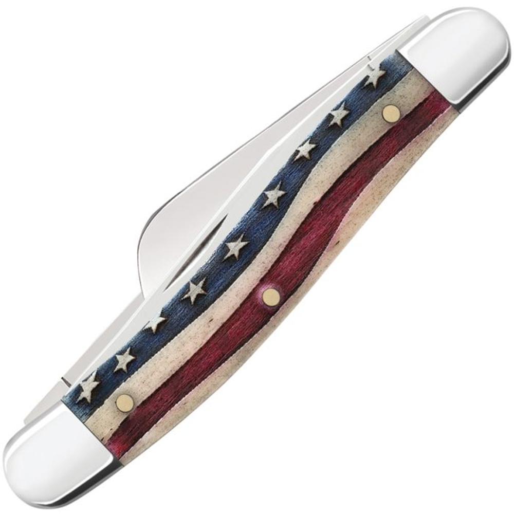 This Medium Stockman is a part of the Star Spangled Family. Crafted with pride and attention to detail, this patriotic series celebrates the values, history and spirit of America. Stockman's pack three blades in a convenient but very practical pocket knife. The Clip and Sheepfoot blade sit on the pocket end while the Spey blade sits on the cap end. The Clip blade is commonly used as a multi-purpose blade and preferred for detail work. The Sheepfoot blade allows for added strength at the point making it great for carving and achieving a clean cut. The Spey blade is commonly used as an all-purpose utility blade. This knife is constructed with Case Tru-Sharp™ stainless steel which is a special high-carbon steel that helps the blades hold an edge longer than conventional steel. It also offers extraordinary blade strength and corrosion resistance. Comes conveniently packaged in a box. Made in Bradford, PA, USA from domestic and imported materials.