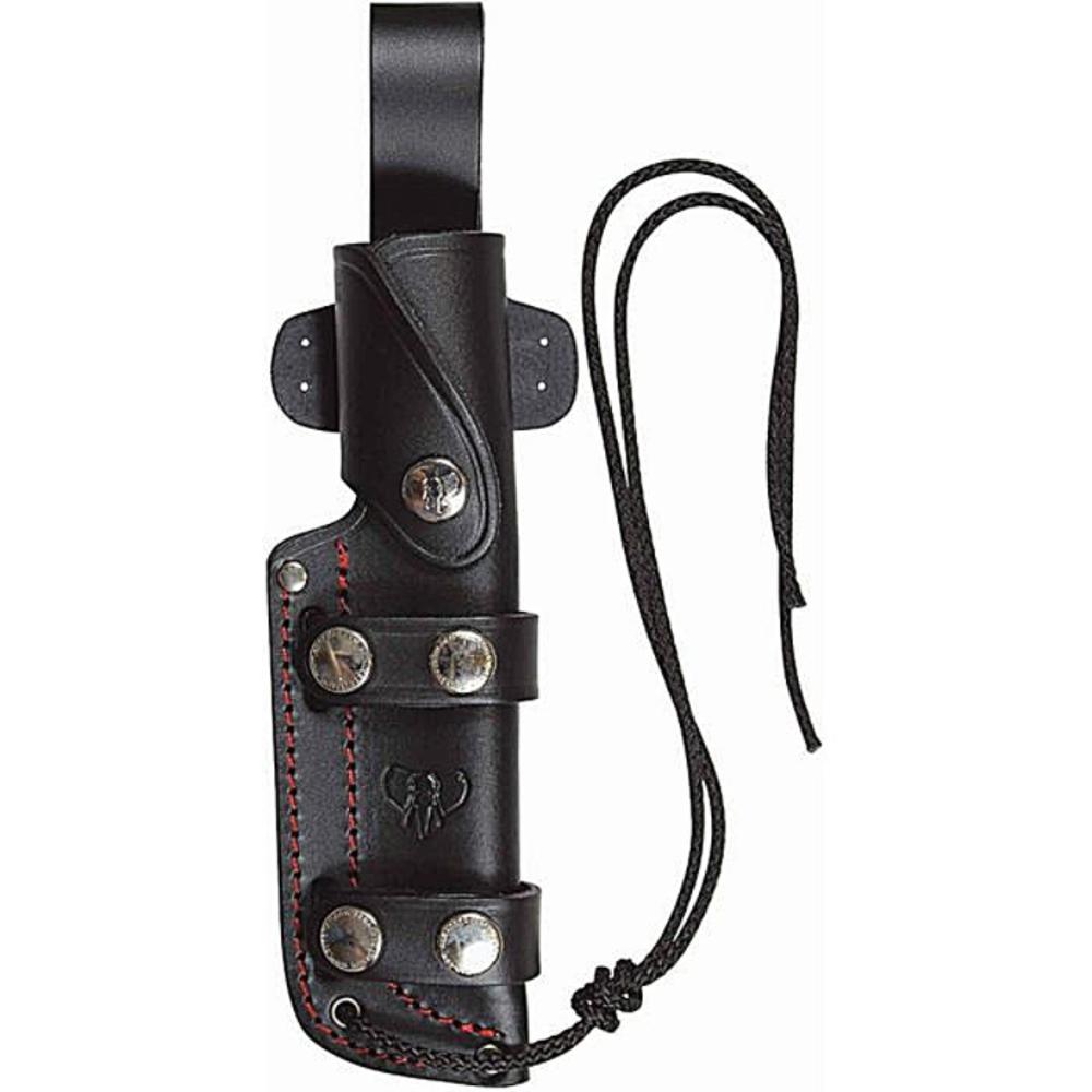 Cudeman Bushcrafter satin finish Bohler N690 stainless blade. Black micarta handle. Full tang. Lanyard hole. Scandi grind blade. Black leather belt sheath.