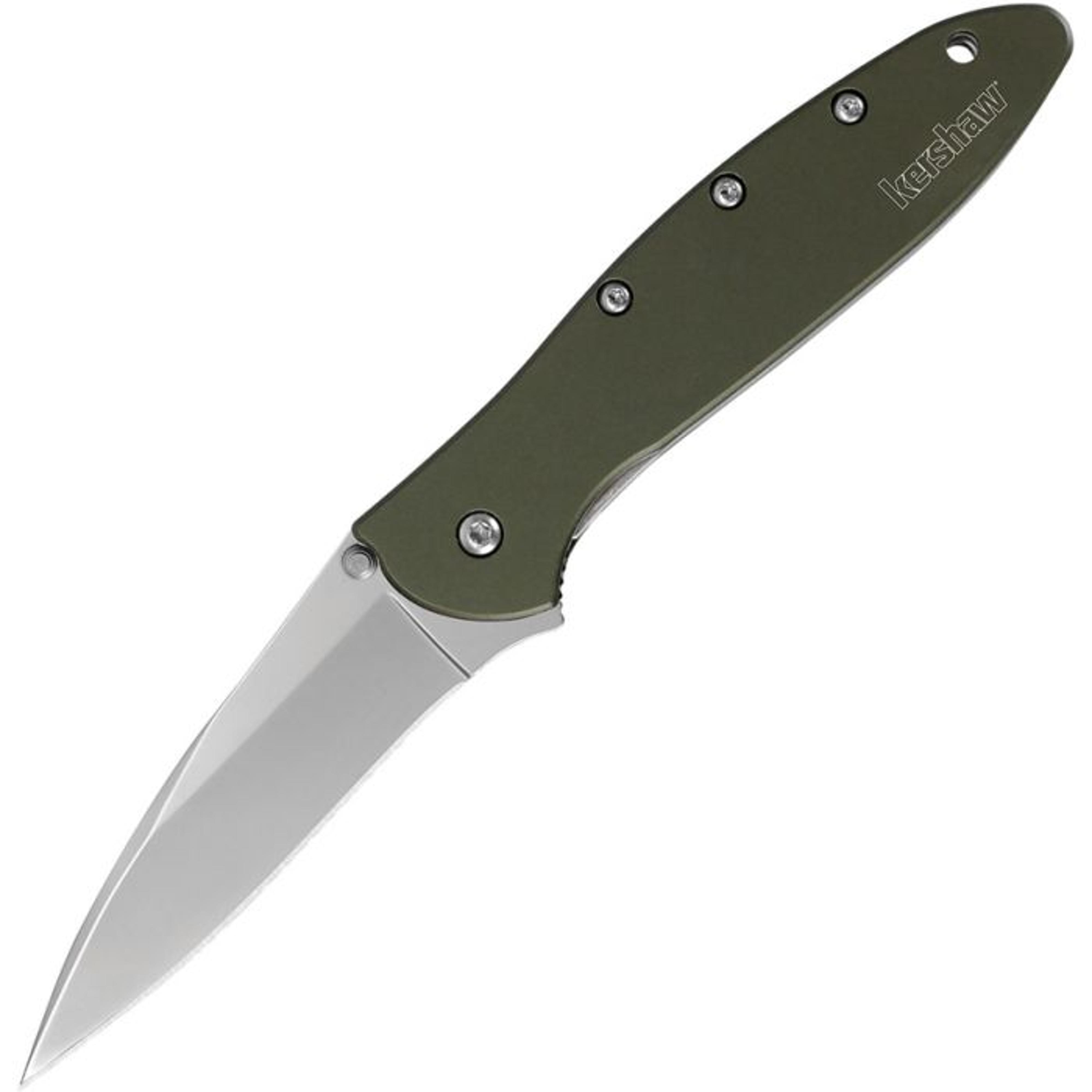 Kershaw Leek Assisted Opening, 3" Bead Blast 14C28N Steel Wharncliffe Blade, Olive Aluminum Handle