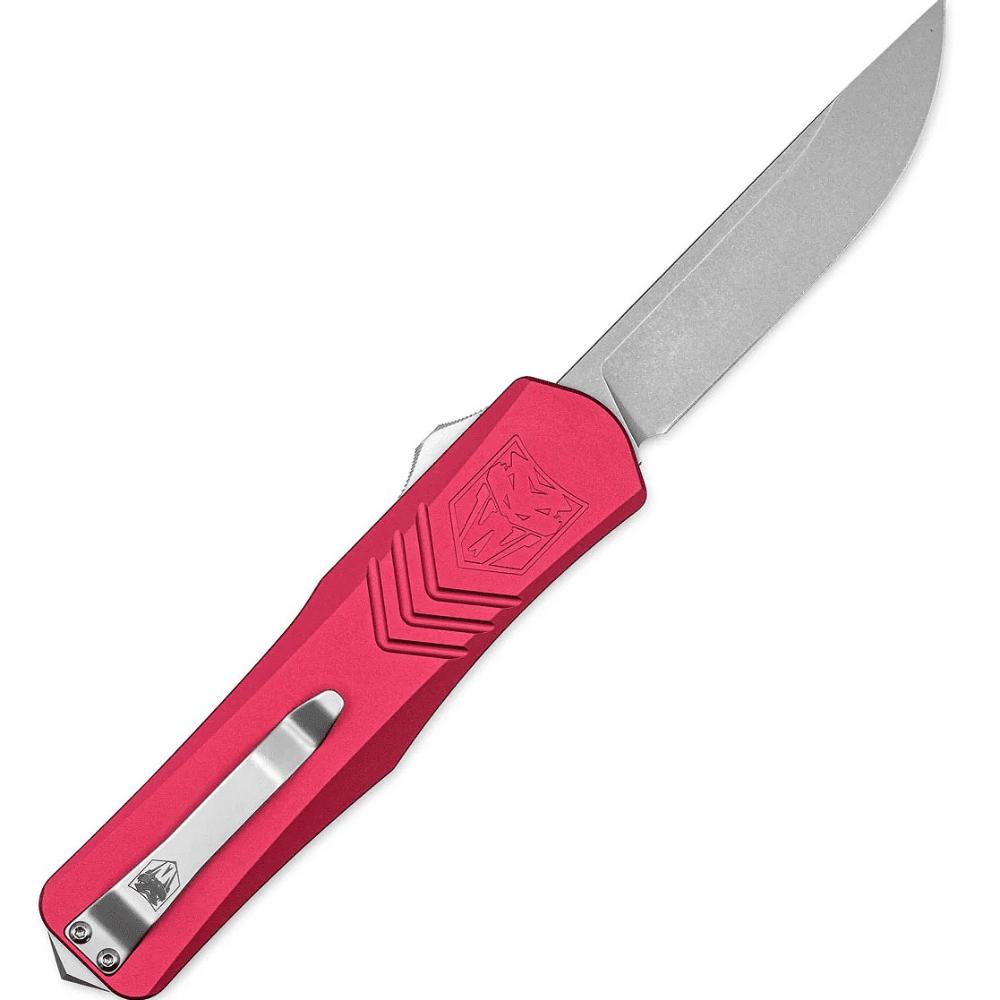 Cobratec Knives Large FS-X Gen III, 3.5" Stonewash D2 Steel Blade, Red Anodized 6061 T6 Aluminum Handle